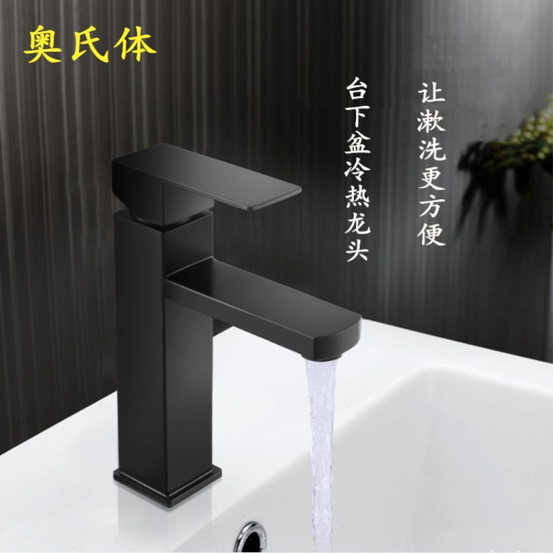 304不锈钢黑色冷热浴室台下陶瓷盆卫生间单孔方形面盆水龙头