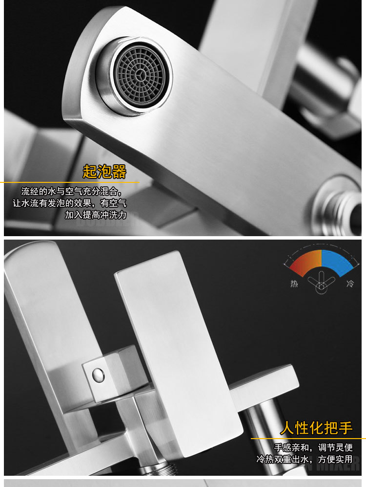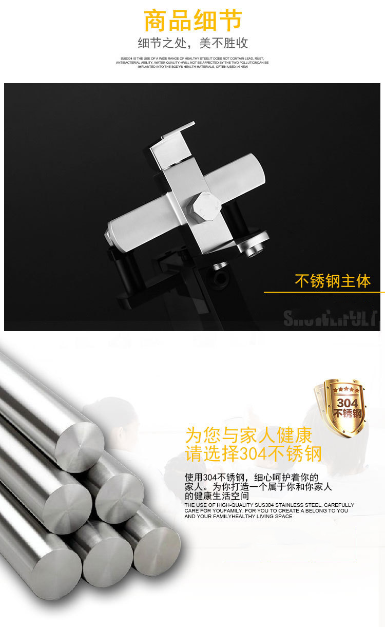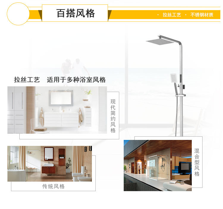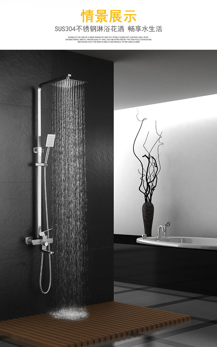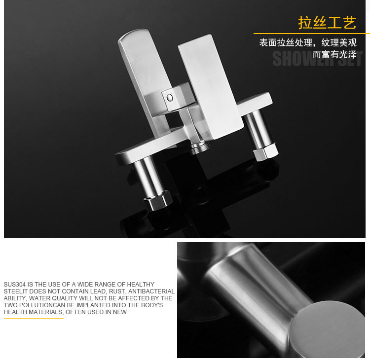 304不锈钢四方形淋浴增压花洒洗澡手持拉丝浴室混水阀水龙头套装