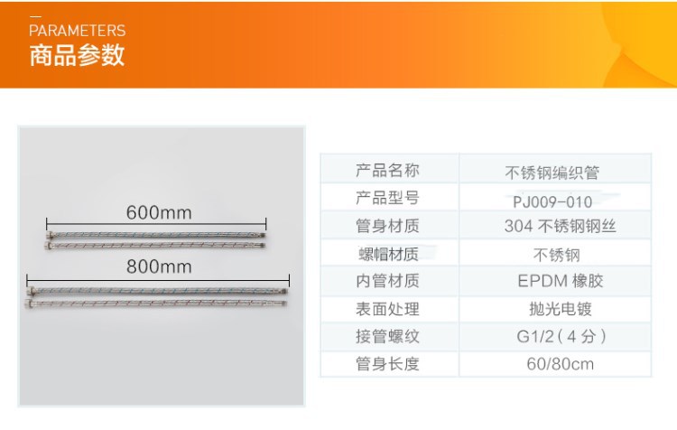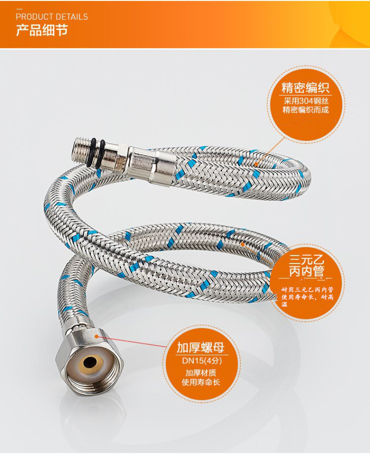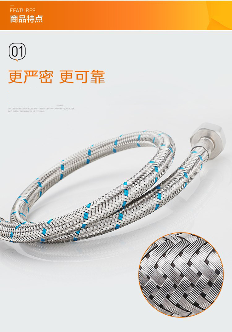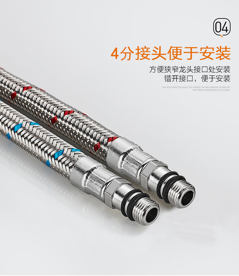 304不锈钢冷热水软管红蓝不锈钢编织进水管G1/4接口4分高压防爆管