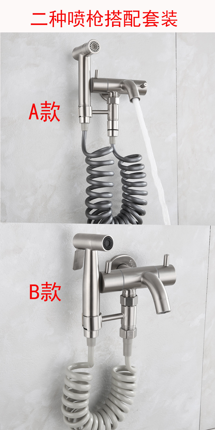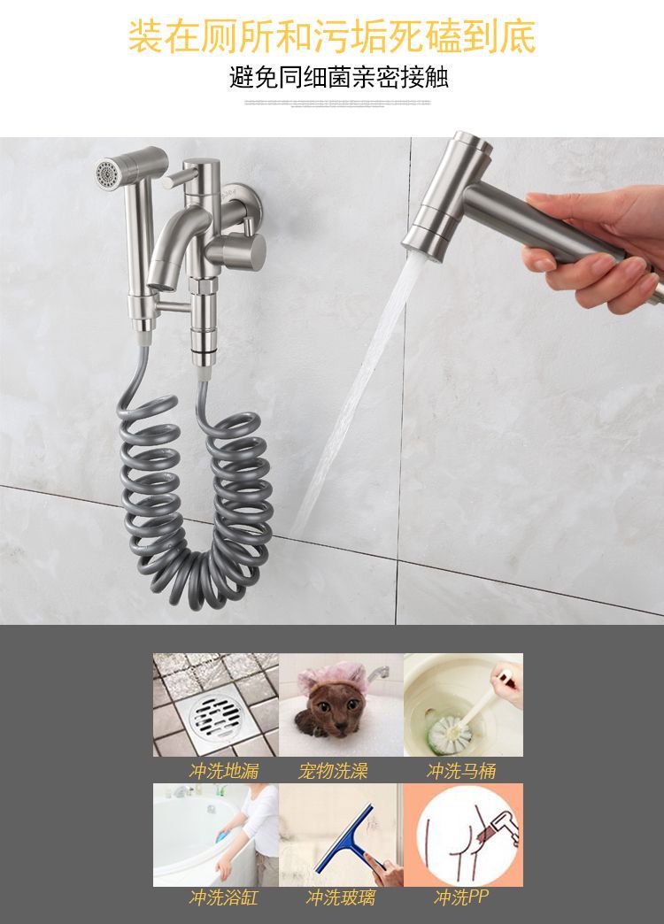 304不锈钢拉丝阳台增压喷枪浴室多功能妇法器喷头马桶伴侣套装