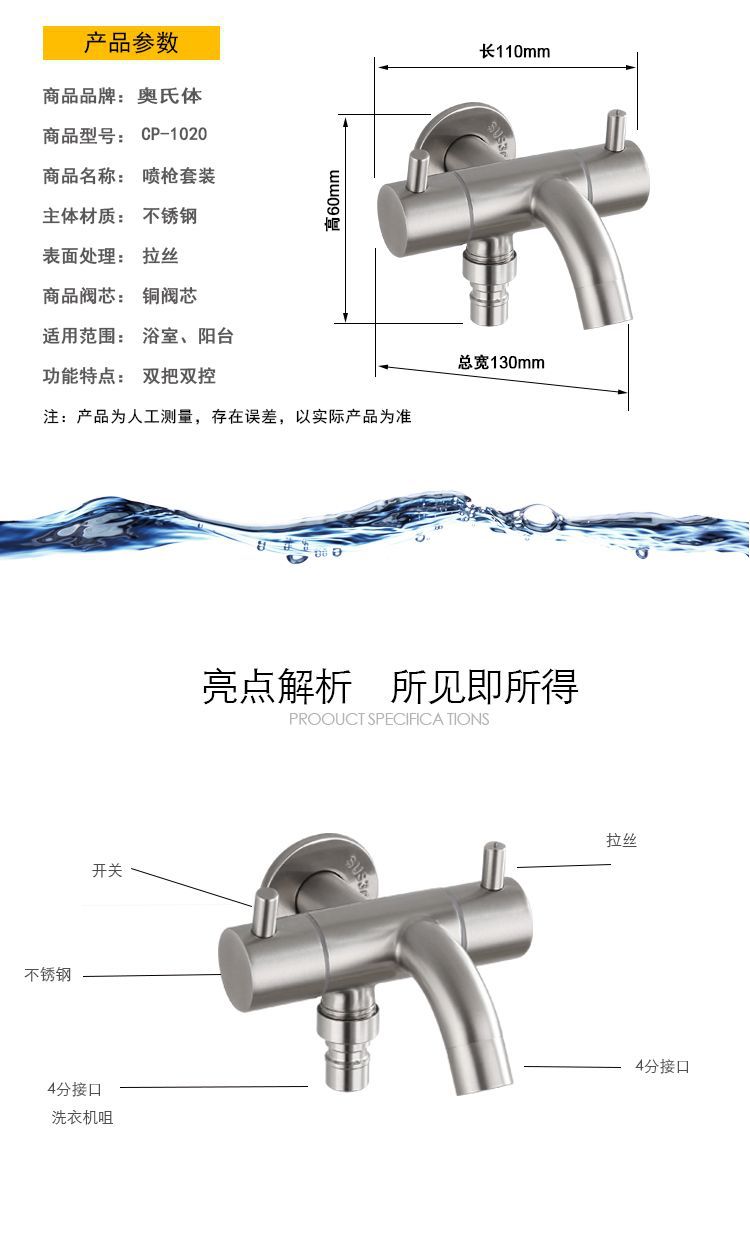新款多功能喷枪套装上市!A款套装搭配的是二功能出水喷枪,双层加大弹簧管。耐高温