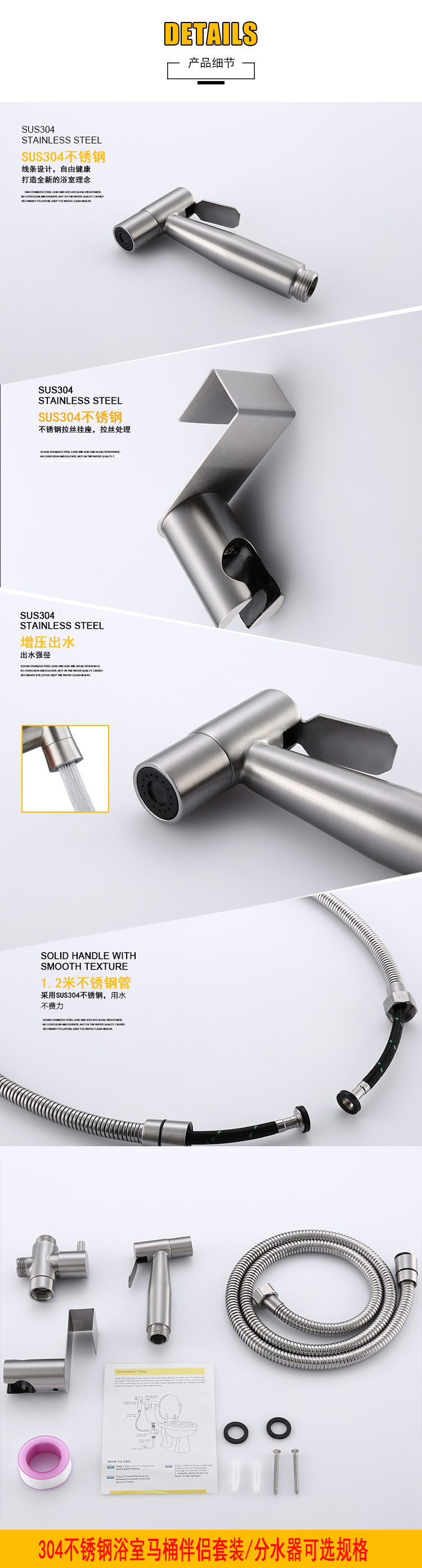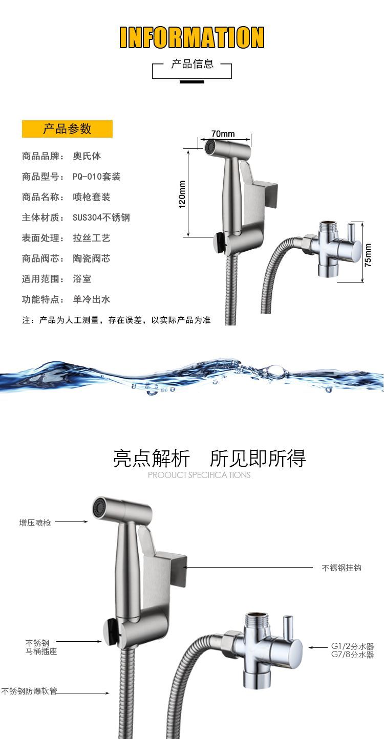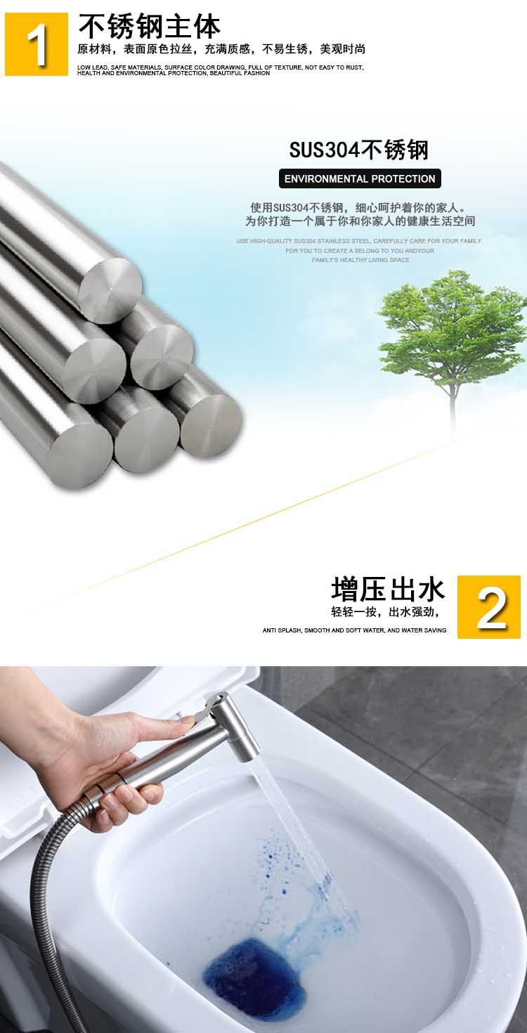 304不锈钢美规妇洗器欧规马桶伴侣清洗7/8分水器挂座马桶喷枪套装