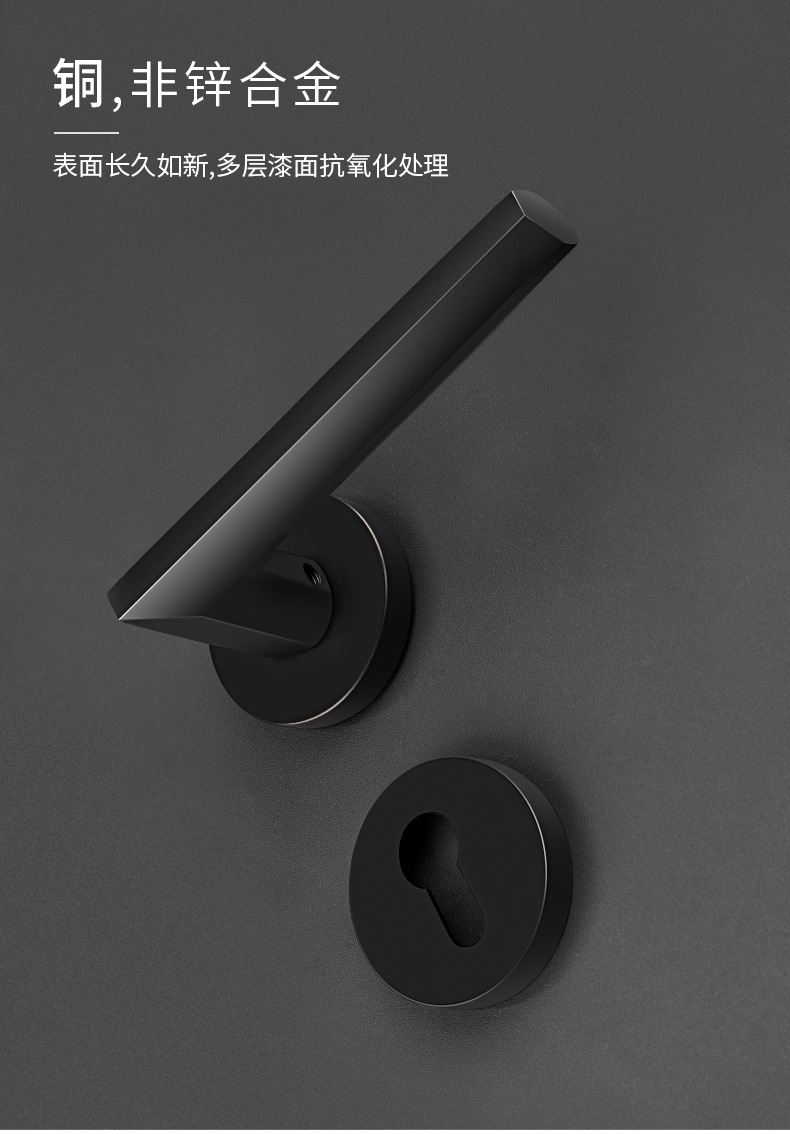 厂家货源全铜木门门锁卧室房门锁静音实木门把手纯铜分体黑色铜锁