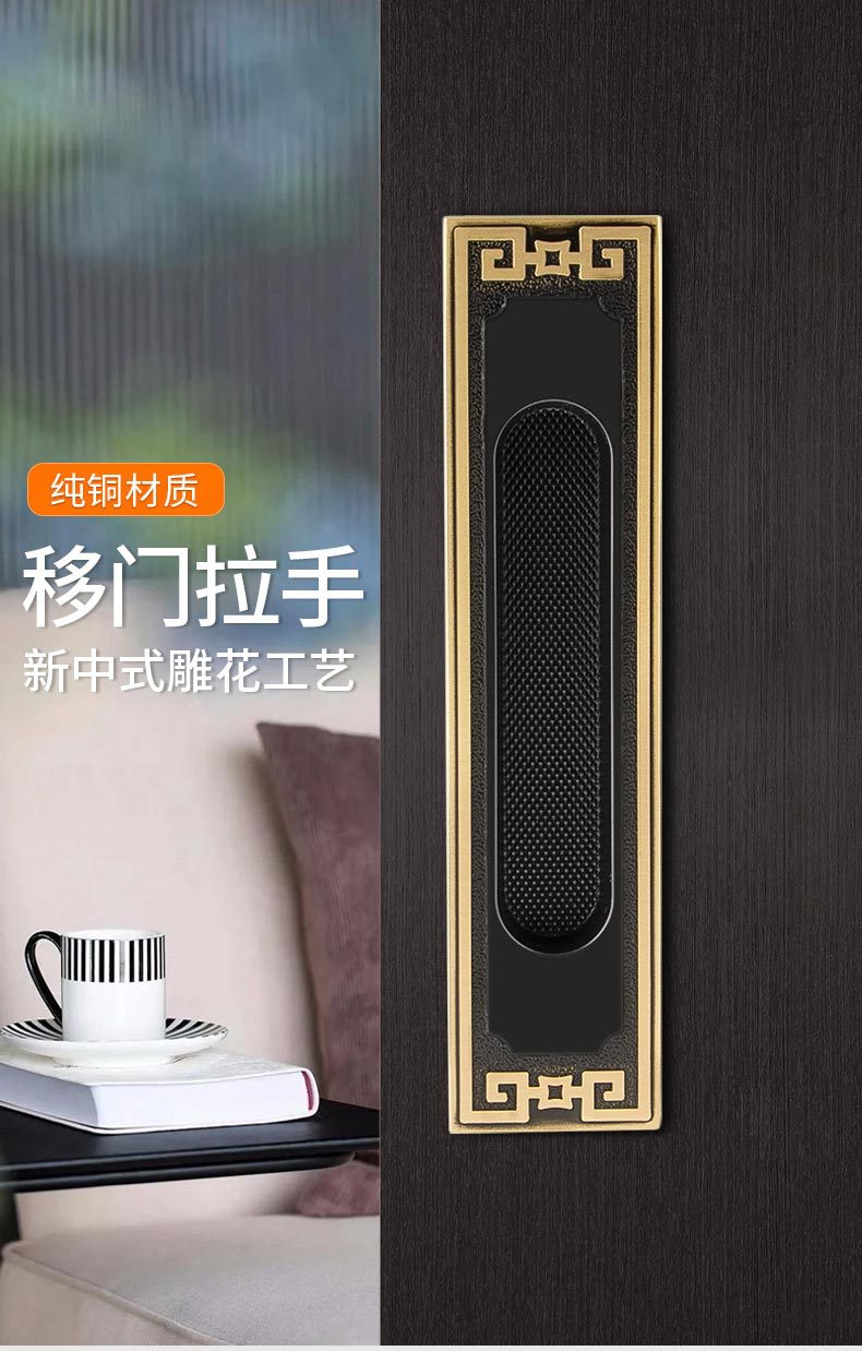 全铜移门暗扣拉手 室内嵌入式门拉手 实木新中式家用隐形移门把手