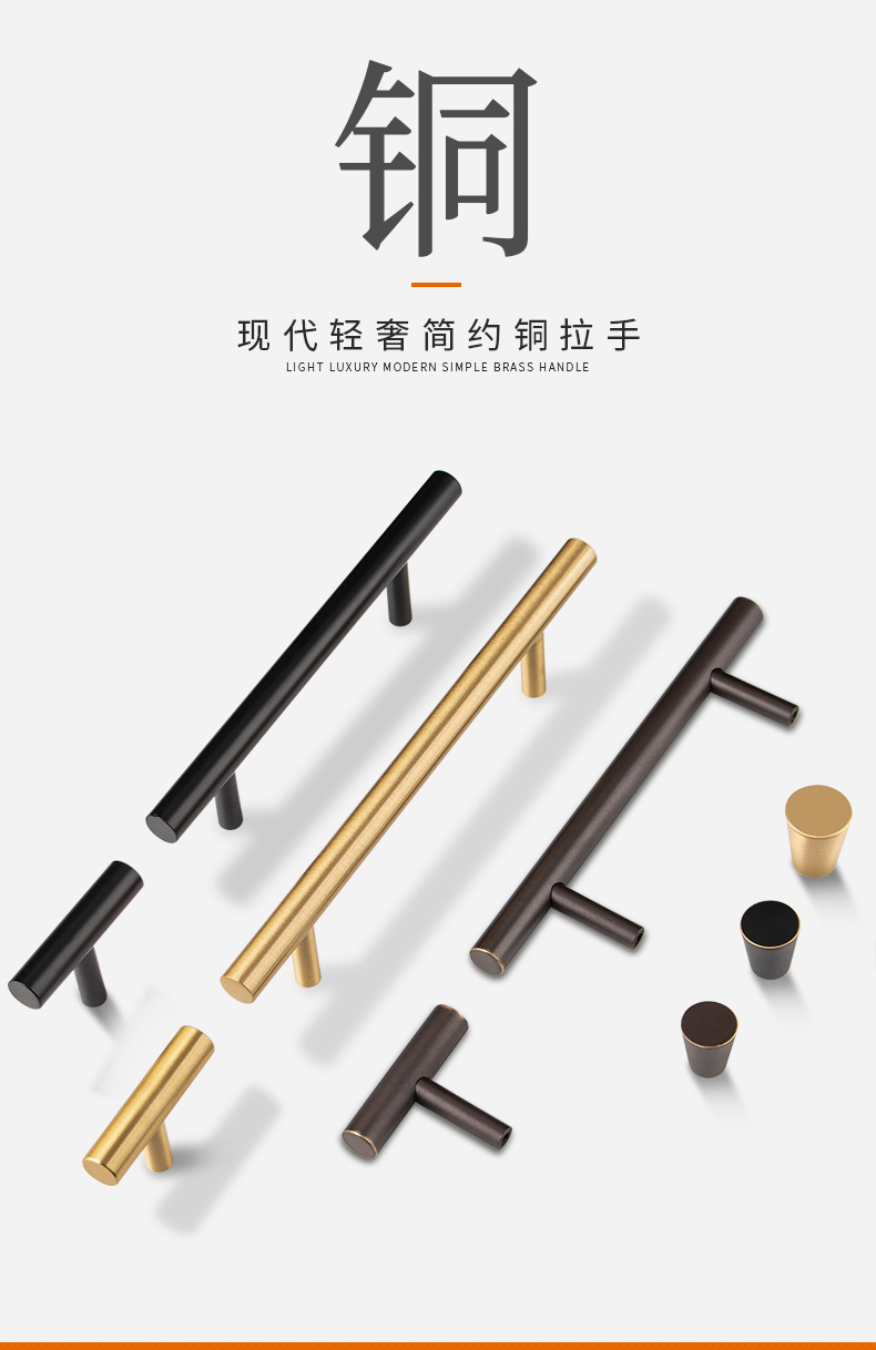 全铜 橱柜拉手现代简约衣柜把手柜门拉手黑色拉手单孔新中式轻奢