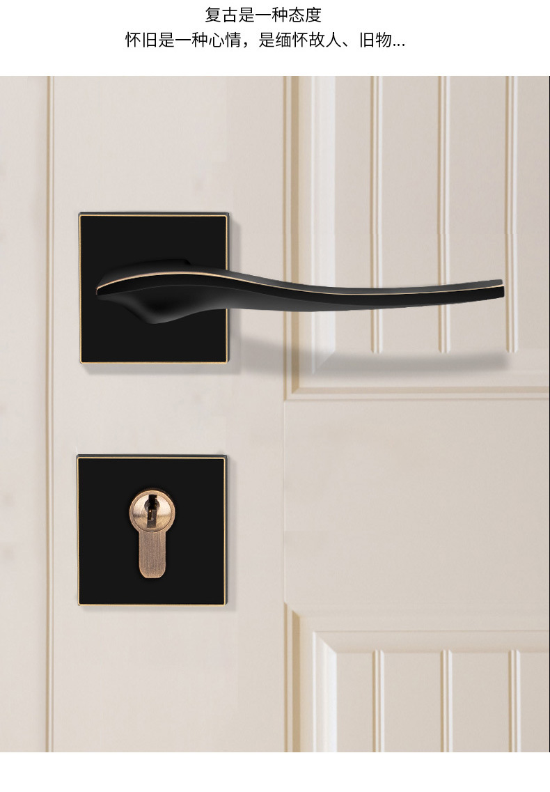 美式全铜室内门锁房门锁 黑色纯铜分体锁 别墅豪华静音执手木门锁