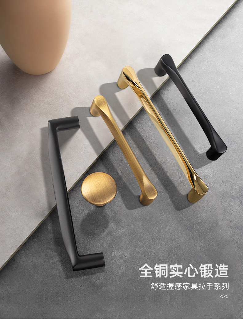 跨境全铜柜门拉手纯铜意式抽屉拉手黄铜拉丝衣橱单孔家具五金批发
