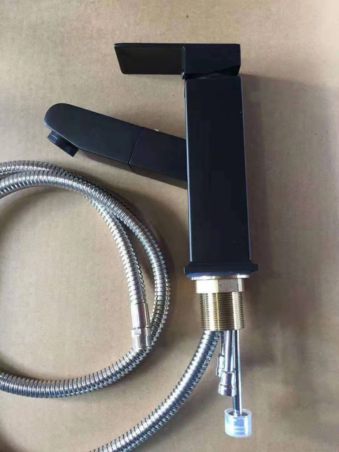 批发 不锈钢冷热抽拉式水龙头 浴室面盆洗手间台盆黑色抽拉水龙头