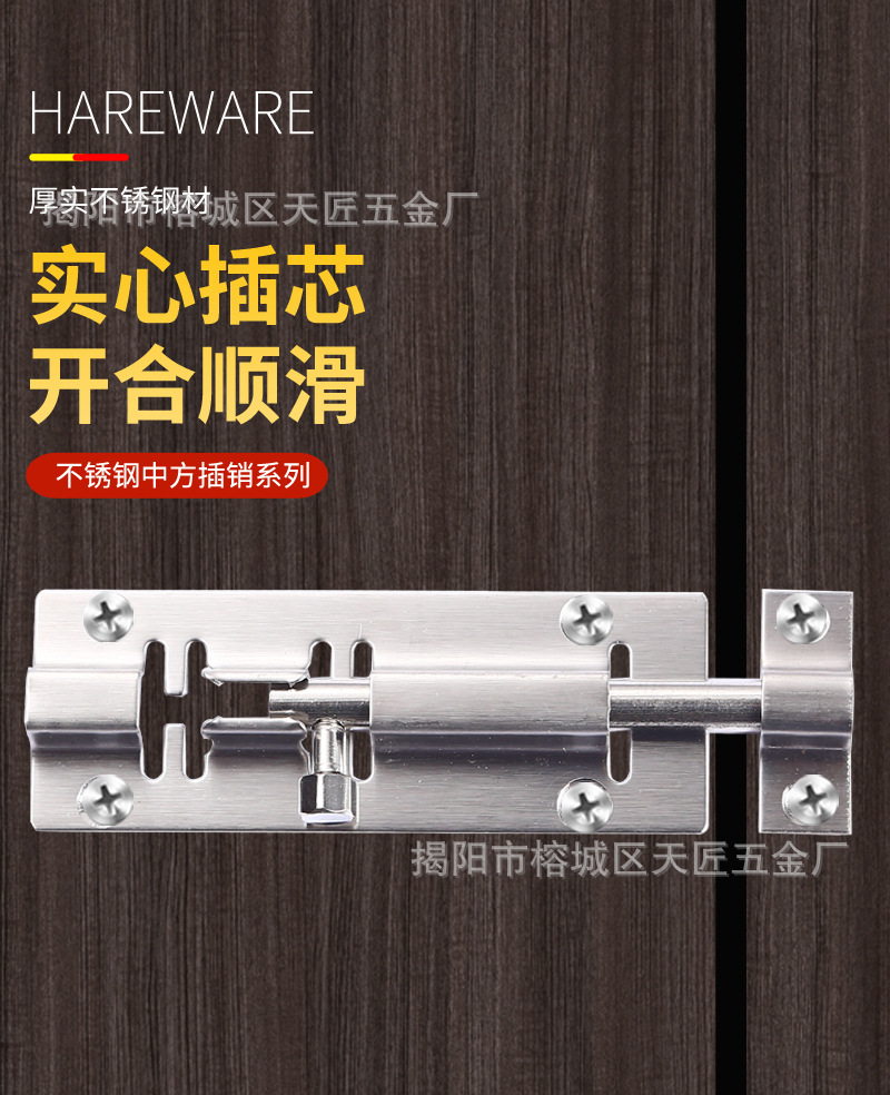 304不锈钢中方插销加厚黑色窗户防盗闩木门锁扣老式加长安全搭扣