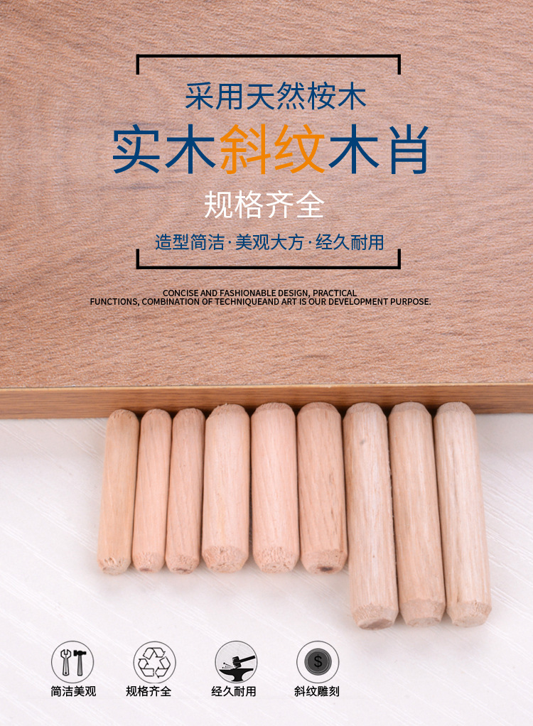 木销定位器 木板斜纹杆木棒肖柴棍条塞栓家具三合一连接件 木梢榫