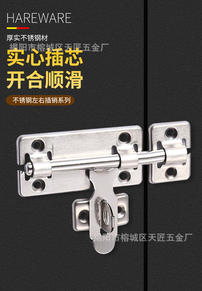不锈钢防盗插销木门锁扣加厚门牛带挂锁窗户老式门闩明装扦锁门栓
