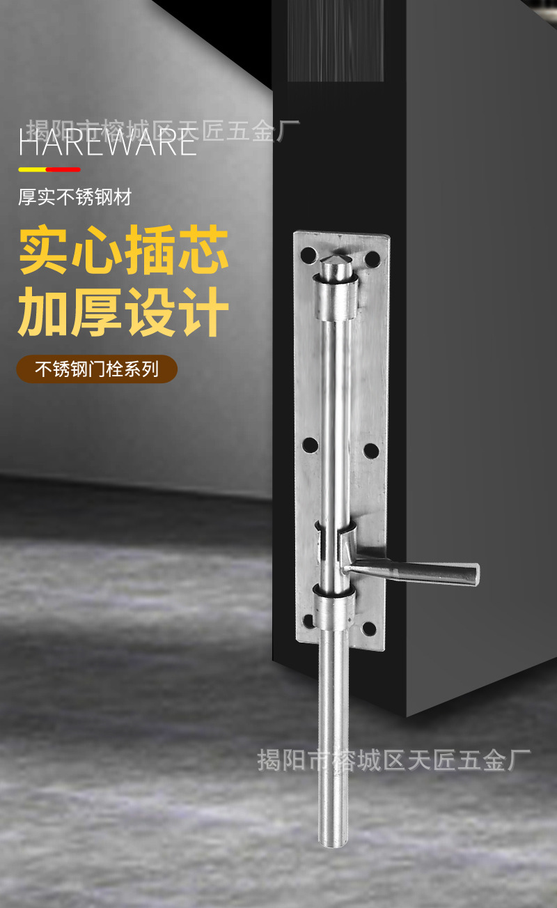 不锈钢地插销加厚实心铁门明装落地门栓围栏大门上下老式加长插销