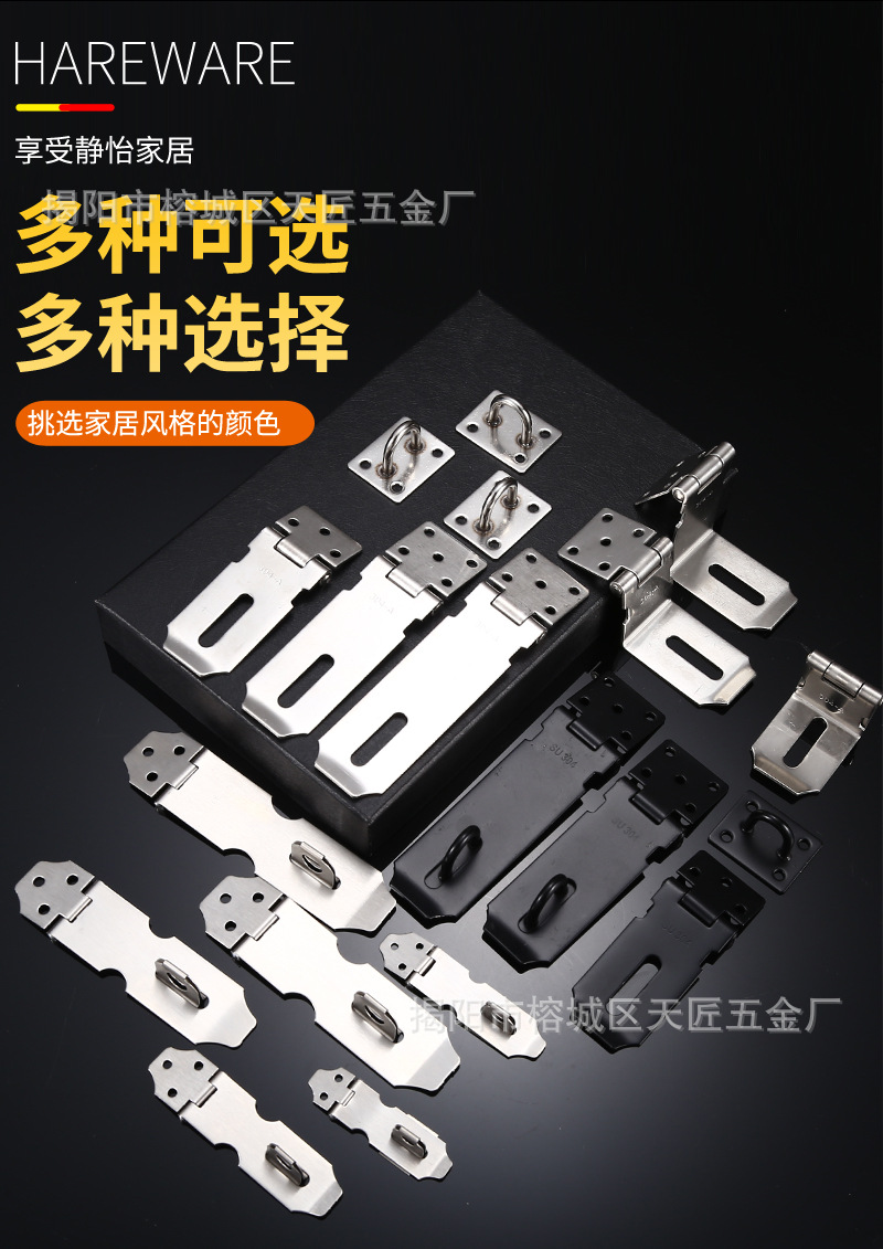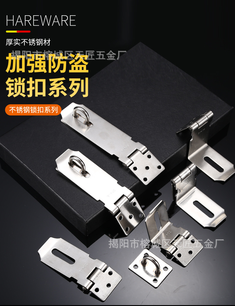 不锈钢锁扣加厚防盗搭扣带挂锁箱扣安全老式插销折叠锁具90度锁牌