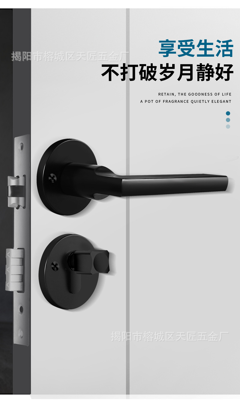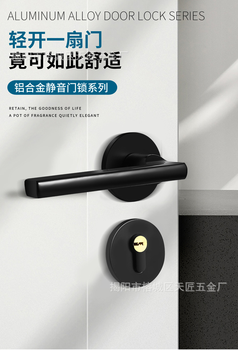 房门执手锁静音家用黑色木门压把锁铝合金房间门锁卧室静音分体锁