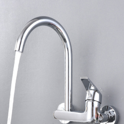铜厨房入墙式洗衣槽水龙头 双孔可旋转冷热大弯 低管壁式厨房龙头