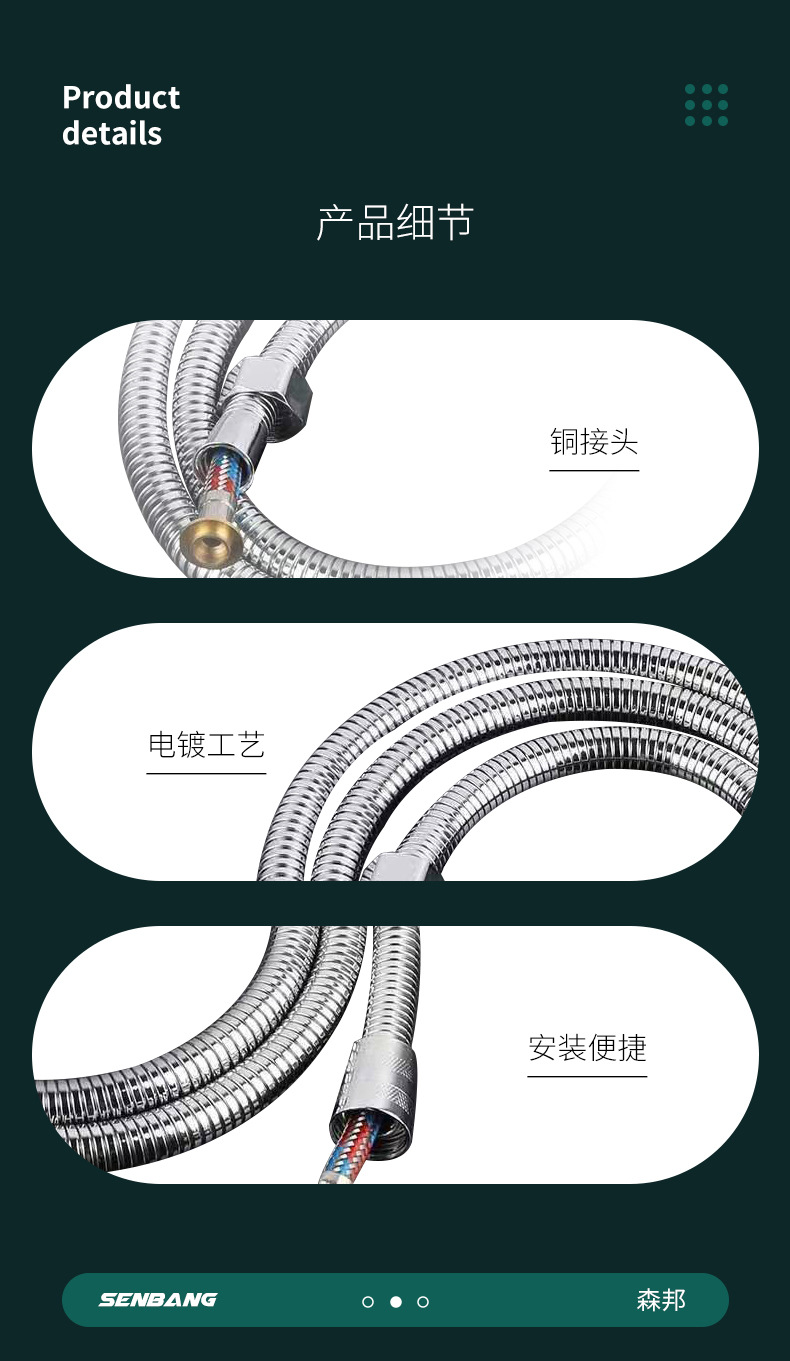 不锈钢淋浴软管花洒软管 电镀通用螺口花洒管 加密管喷头金属软管