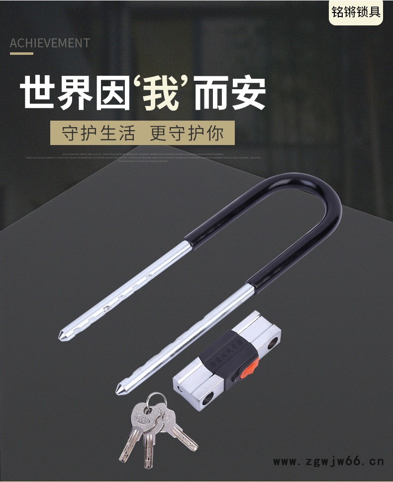 现货供应玻璃门U型锁抗液压剪摩托车锁U型锁推拉门防盗U型拉手锁