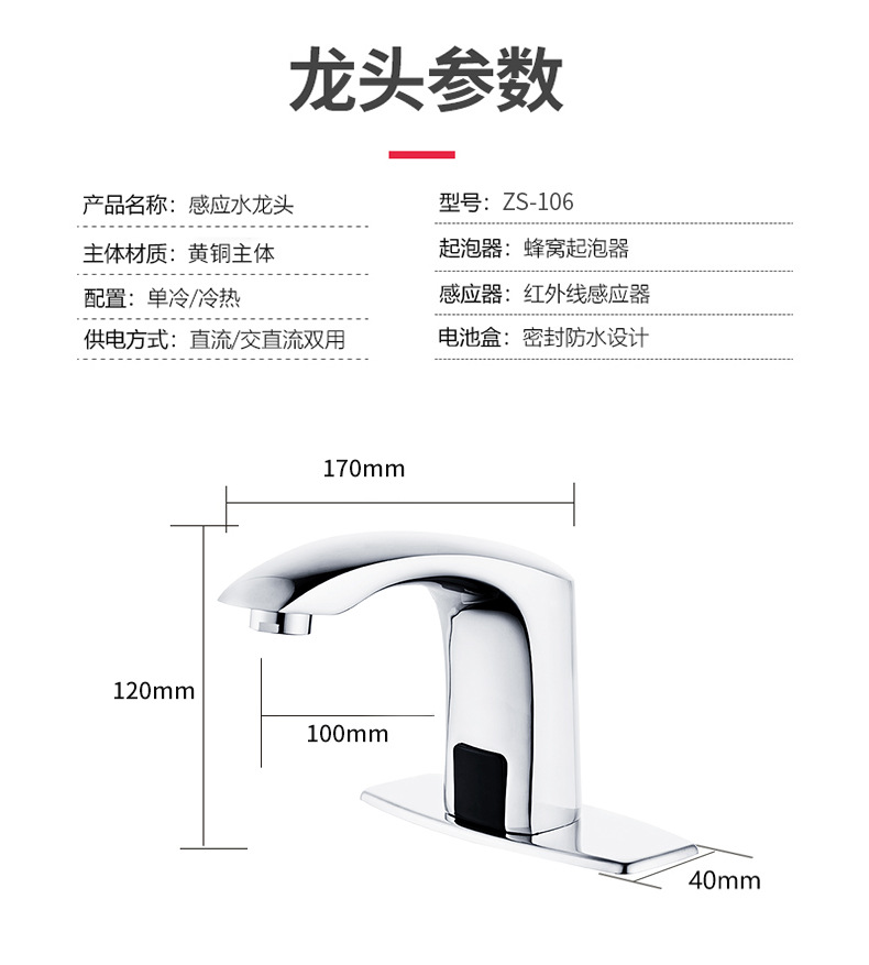中舒外贸款感应水龙头全自动智能红外感应器感应式龙头单冷冷热水