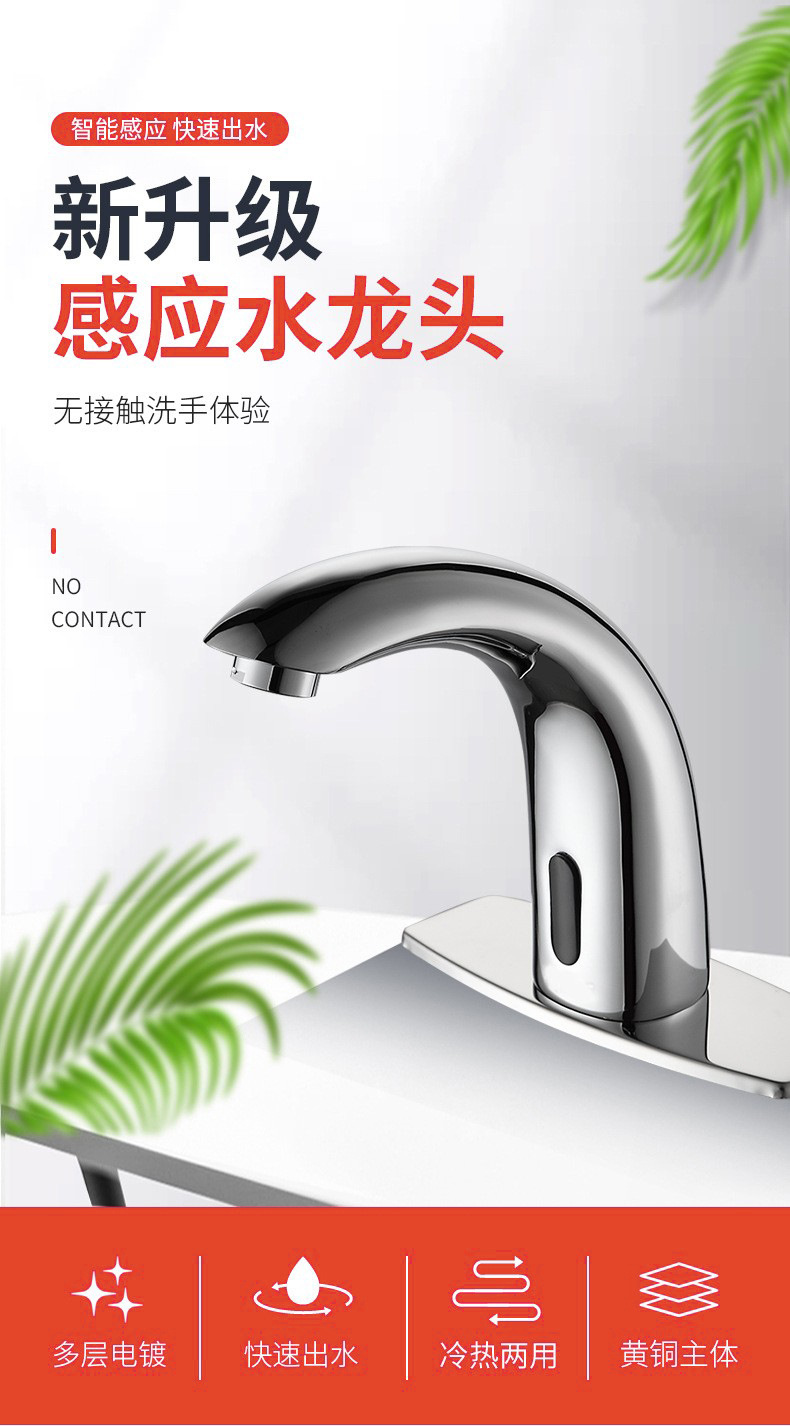 中舒铜主体台上盆自动感应水龙头单冷热全铜智能面盆红外线洗手器