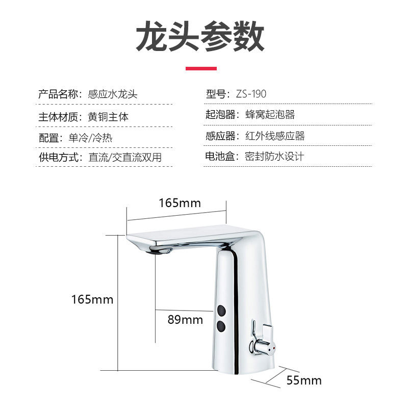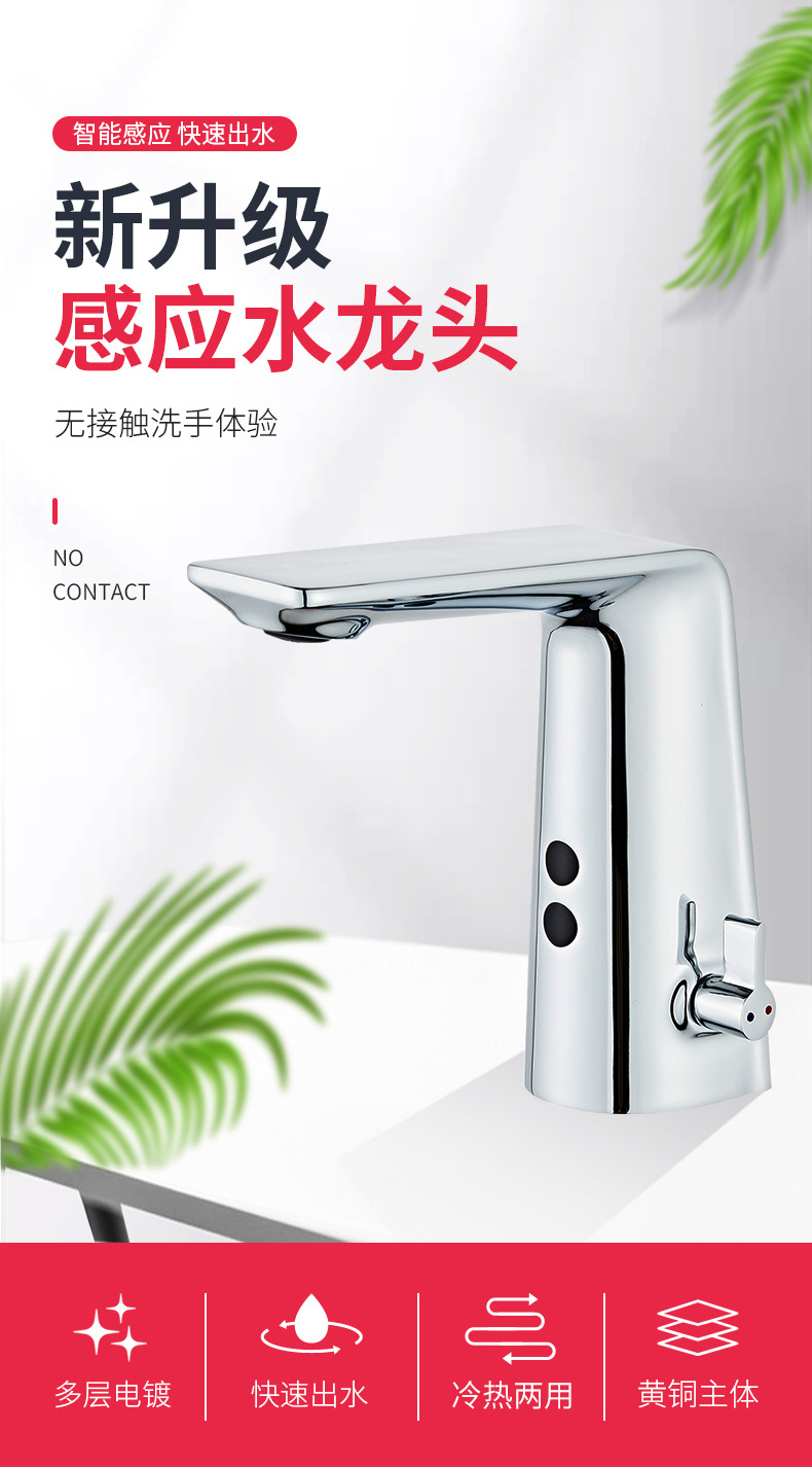 中舒全自动冷热调节一体化感应水龙头商用感应式洗手盆智能感应器