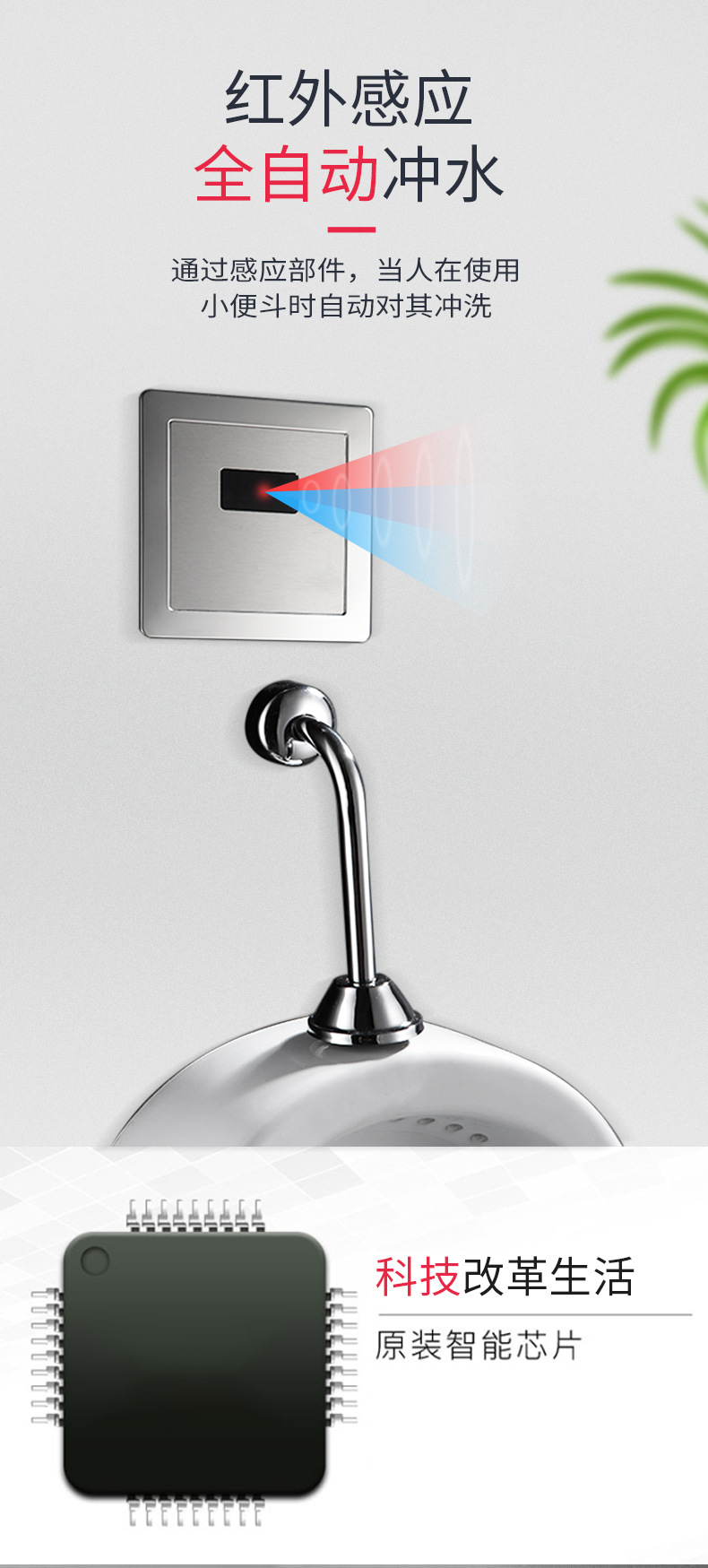 中舒智能感应小便冲水器暗装小便斗全自动感应器不锈钢入墙小便器