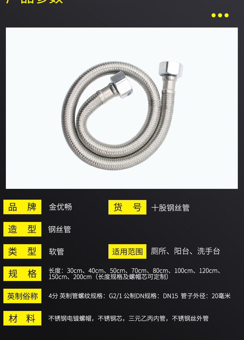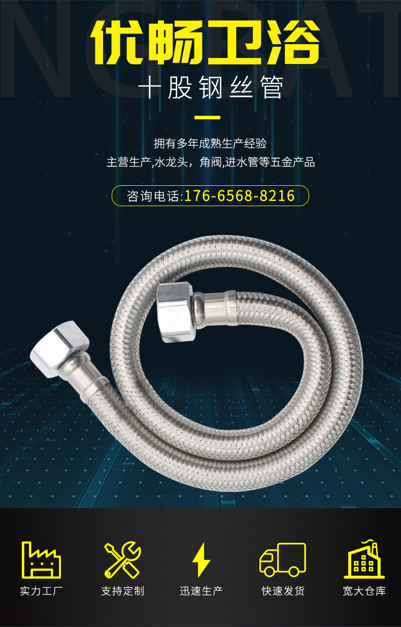 源头厂家双头不锈钢编织软管 织管 304马桶进水软管 四分厕所软管