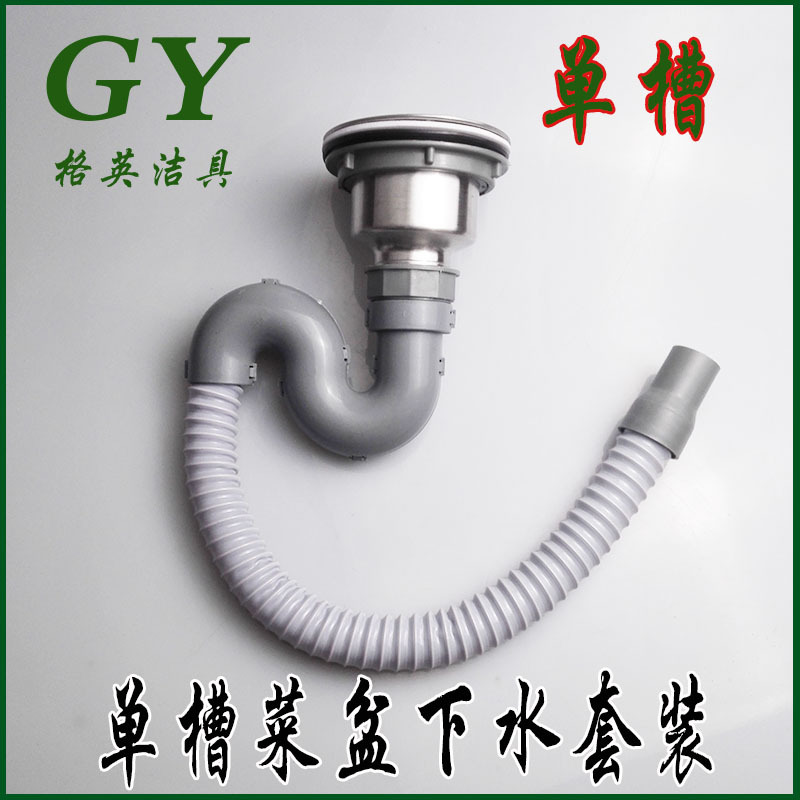 厨房菜盆单槽不锈钢下水器无溢水孔水槽下水防臭防虫过滤防堵漏
