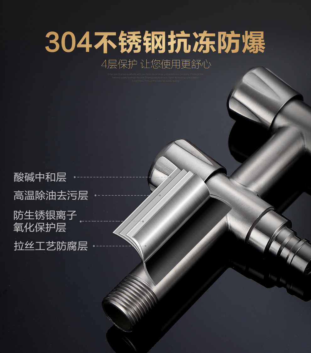 洗衣机龙头不锈钢单冷一分二多功能角阀一进二出两用入墙式水龙头