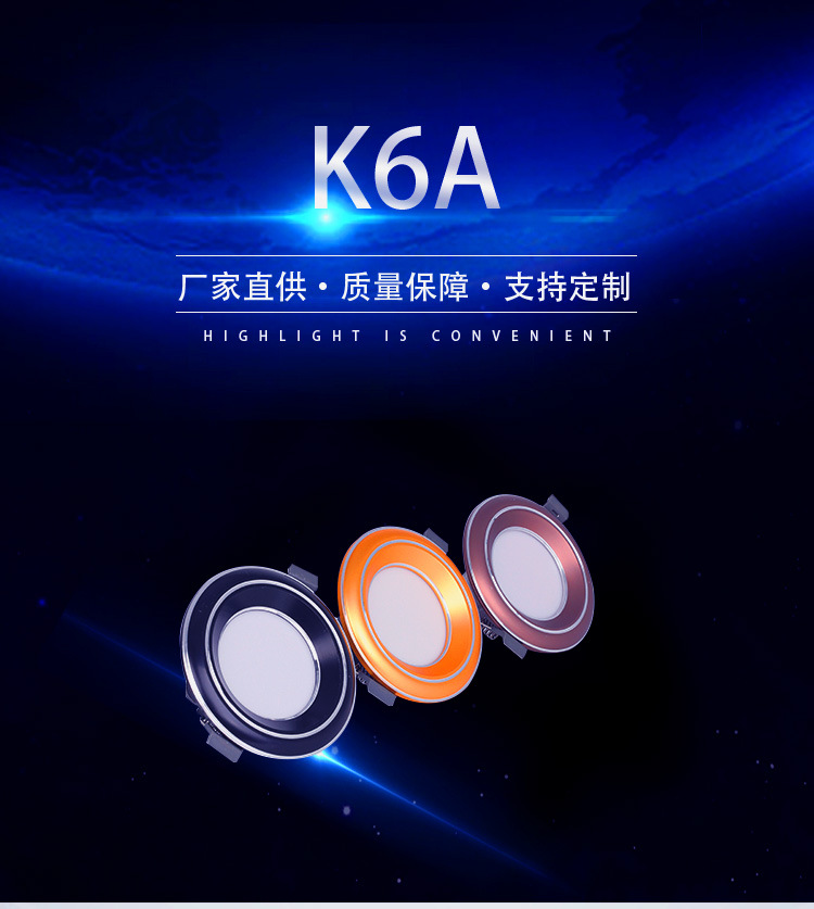 酒店嵌入式天花灯2.5寸5W射灯孔灯家用LED三色铝材筒灯量大从优