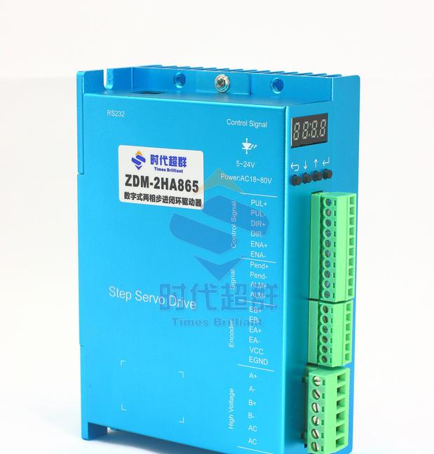 新一代 DSP 数字式步进闭环驱动器,采用先进的矢量型闭环控制技术,彻底克服传统开环步进电机丢步的问题,并且显著提高步进电机的高速性能、降低电机的发热程度和减小电机的振动,进一步的提升设备的工作速度和精度,降低设备的能耗。此外,在电机出现连续过载时,驱动器会输出报警信号,具有与交流伺服系统同样的可靠性。适配的电机安装尺寸与传统的 (57/60) 和 86系列步进电机完全兼容,传统开环步进驱动方案可以做到无缝升级,并且成本相对于传统交流伺服系统的来讲具有极高的成本优势。本驱动器适合于各种中小型自动化设备和仪器,例如:木工雕刻机、线束加工机、激光切割机、高速绘图仪、小型数控机床、自动化装配设备等。在要求噪音小、运行平稳、高速度响应的设备中应用效果特佳。技术特点采用全新 32 位电机控制专用 DSP 芯片;采用先进的矢量型闭环控制技术;LED 数码管显示配按键操作,直观明了,操作方便;静态电流和动态电流可以任意设置(有效值 0---6.5A 范围内);可适配驱动 (57/60) 和 86 系列混合式闭环步进电机;光电隔离信号输入/输出;脉冲响应频率最高可达 200KHz;提供 16 档通用细分选择,最大 256 细分(51200 脉冲/转);提供与各种脉冲源相匹配的电子齿轮;具有过流、过热、过压和跟踪误差超差等保护;