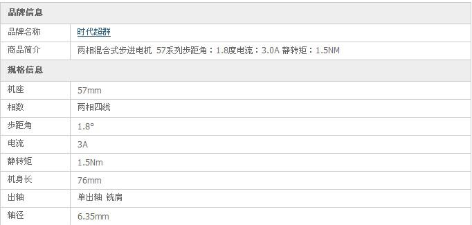 57系列步进电机参数: