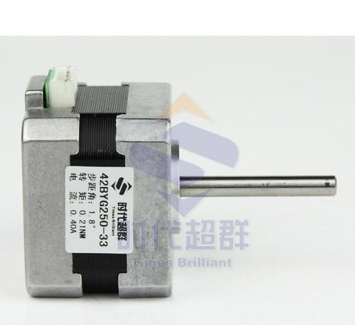 1.使用范围:该规格书适用于42BYG250混合式步进电动机.2.类型和规格:2.1驱动方式:恒流斩波驱动;2.2励磁方式:1-2相励磁(两相四拍运行).可正反向旋转;2.3转向:按A-B-C-D-A顺序通电,从轴伸端看C.W;2.4额定电流(单相):0.4A DC;2.5额定电压:12V;2.6步距角:1.8°;2.7绝缘等级:B级绝缘;3.参数3.1工作条件:环境温度:-24~60℃;相对湿度: 90%MAX;安装位置:轴水平或垂直安装;3.2试验条件(以上参数在正常试验大气条件测定;3.3绕组直流电阻(20℃): 30Ω±10%;3.4绕组电感: 32mH±20%;3.5定位转矩: 11.8mN.m REF.;3.6保持转矩(两相同时通电): ≥210mN.m(I=0.4A);3.7最大空载起动频率: ≥2000pps;3.8最大空载运行频率: ≥3000pps;3.9温升(两相同时通以额定电压12V):﹤80 K;3.10步距角精度: 1.8°±0.09°;3.11转动惯量: 38g.cm2;3.12重量: 0.20Kg REF;3.13轴向间隙:≤0.08mm;3.14径向间隙≤0.02mm;3.15轴伸径向图跳动:≤0.025mm;3.16安装配合面垂直度:≤0.03mm;3.17安装配合面同心度:≤0.05mm;3.18绝缘电阻 电机定子铁芯与接线端子间冷态绝缘电阻应大于100MΩ(用DC500V兆欧表测量).;3.19介电强度 电机定子铁芯与接线端子间应能承受AC600V/lS不击穿,泄漏电流小于1mA .