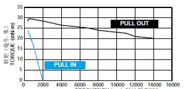 SST36C0080矩频特性曲线DRIVER(驱动电压): TYPE B(Vs=24V)CURRENT(相电流)= 0.8 A/PhaseEXCITING MODE(激磁模式)= 2PhaseINERTIA LOAD(定位转矩): 3g-cm2