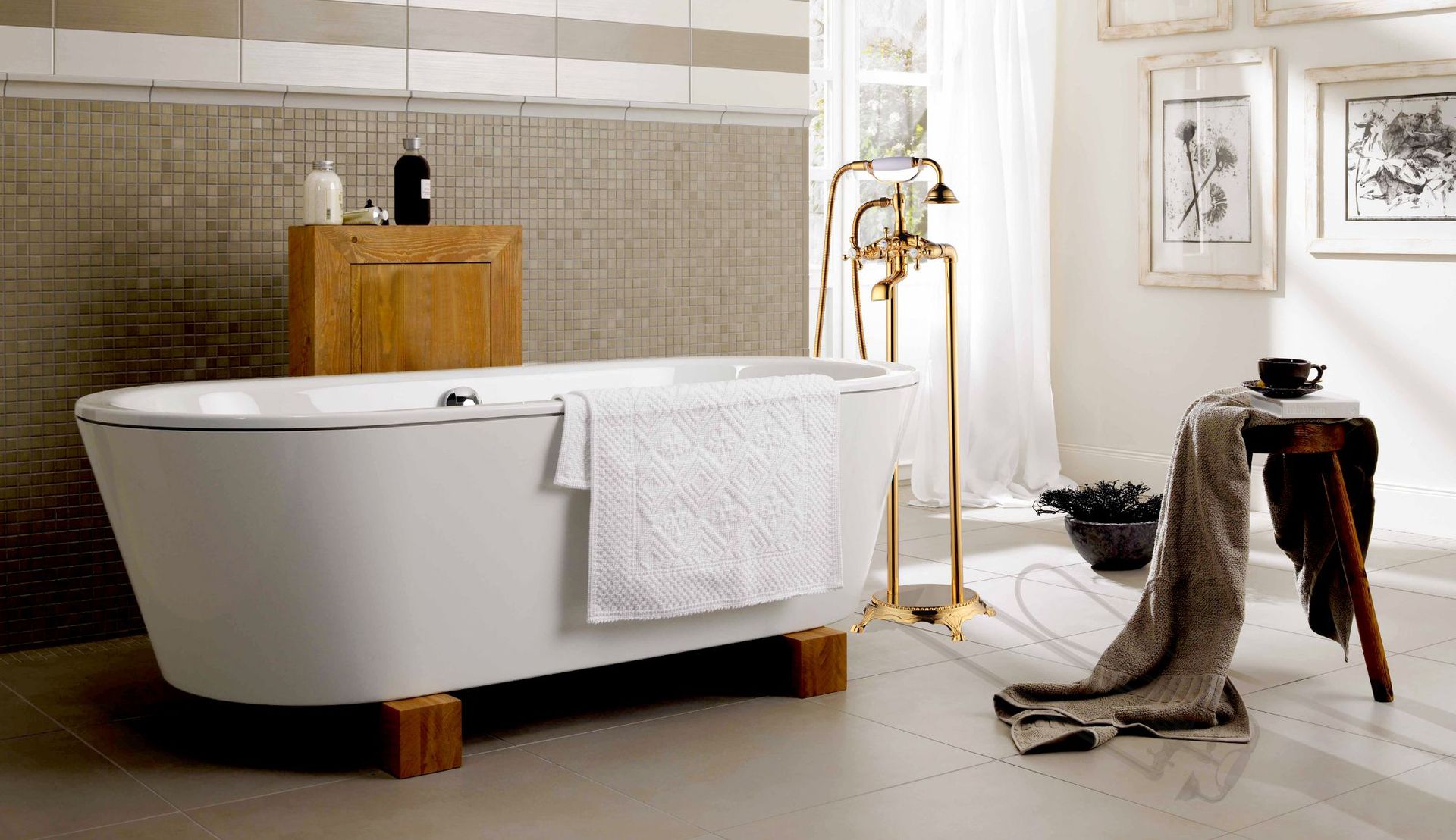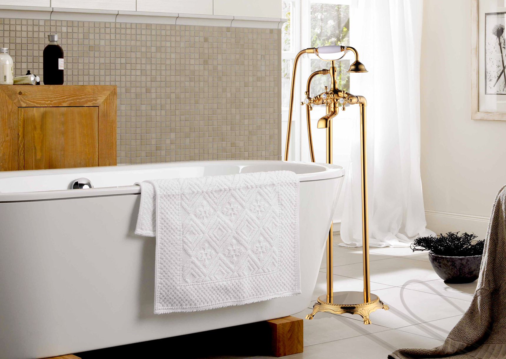 落地式贵妃浴缸水龙头双柱淋浴花洒套装边立式欧式全铜金色双出水