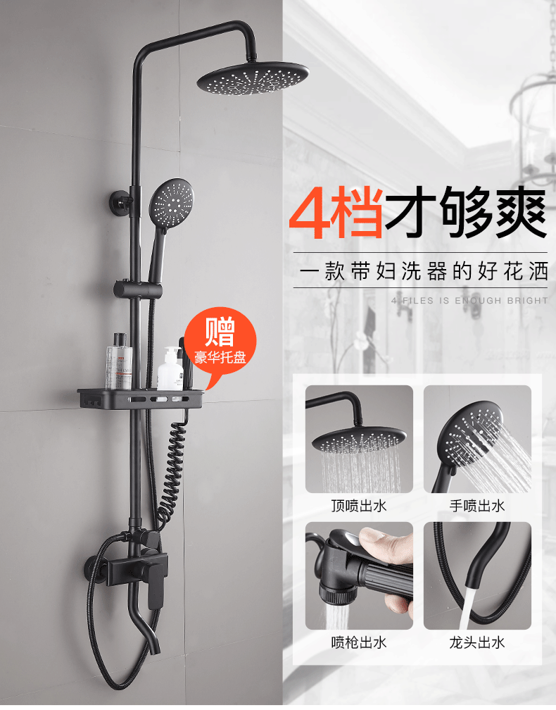 黑色淋浴花洒套装家用全铜欧式浴室花洒淋浴房龙头沐浴器淋雨套装