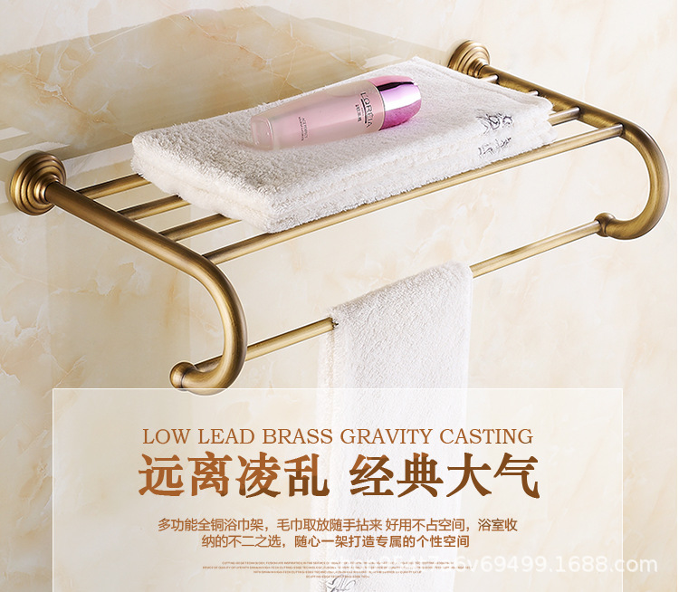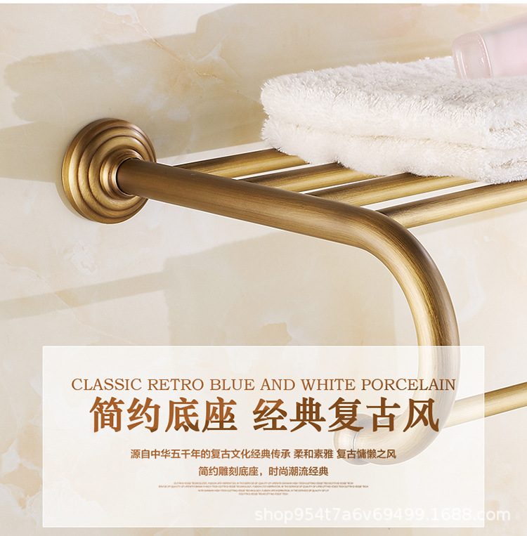 仿古毛巾架全铜纸巾盒浴室卫浴五金挂件套装欧式浴巾架家用置物架