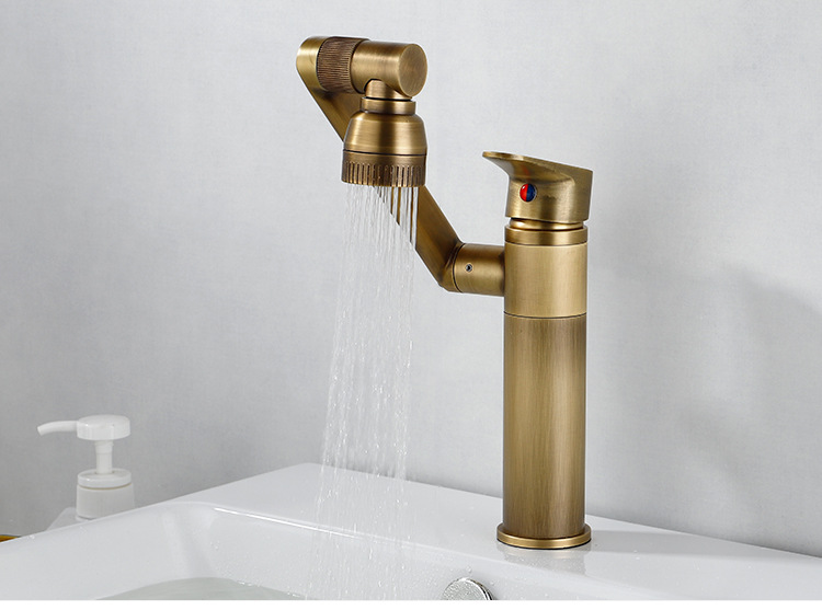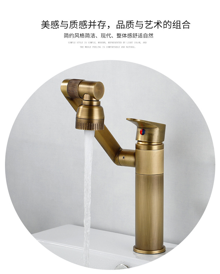 全铜仿古洗脸盆水龙头冷热招财猫复古浴室柜艺术台上面盆旋转龙头