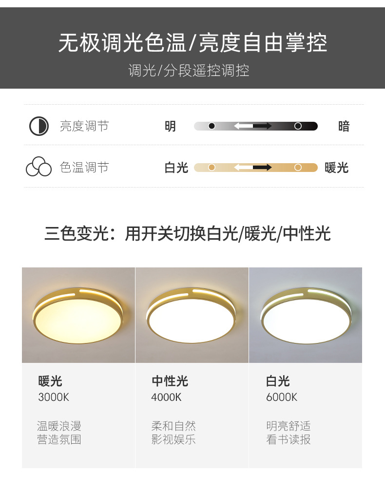 现代简约吸顶灯三色无极变光 家用客厅灯天猫精灵卧室灯 灯具批发