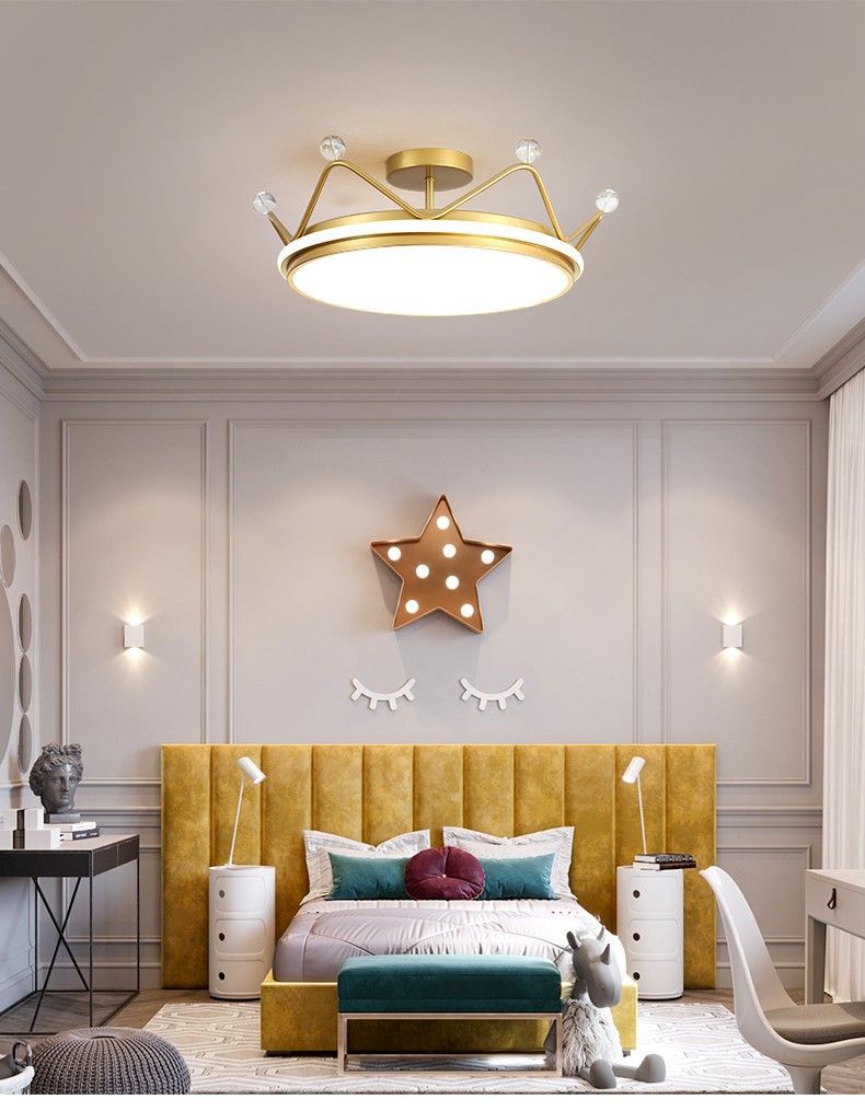 皇冠吊灯卧室灯吸顶灯简约现代温馨浪漫轻奢北欧公主儿童房间灯具