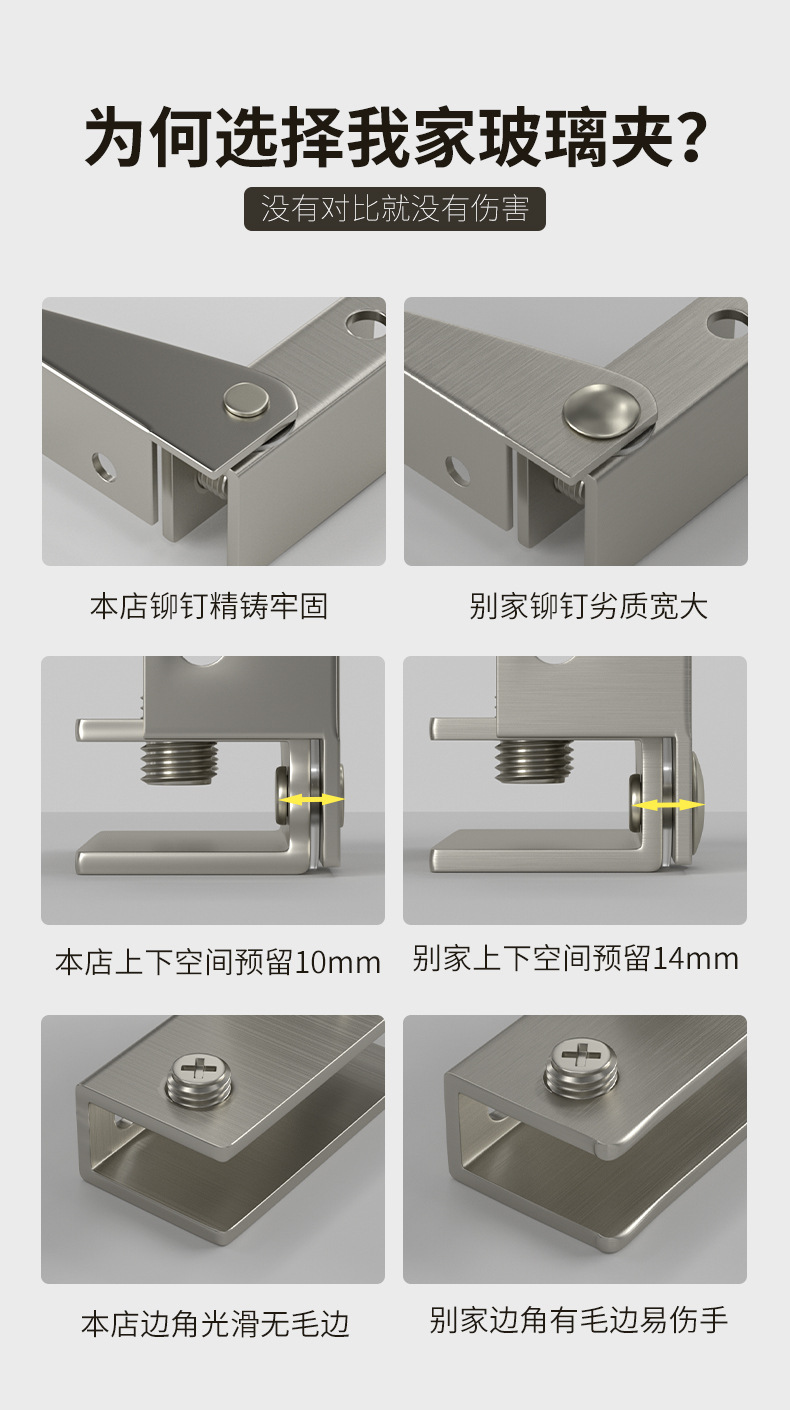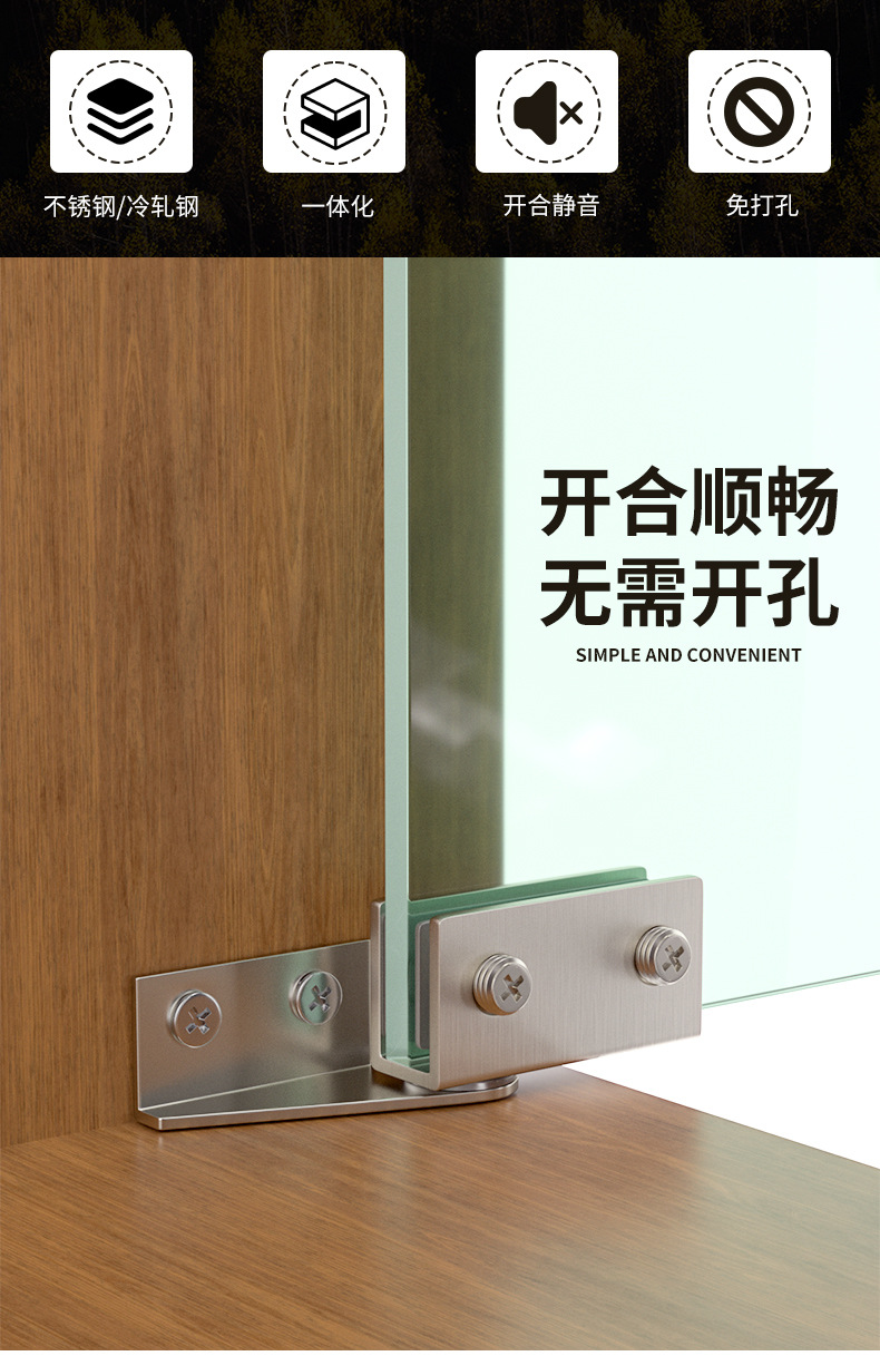 免开孔玻璃铰链合页侧装上下夹宠物柜玻璃夹天地转轴展柜酒柜磁碰