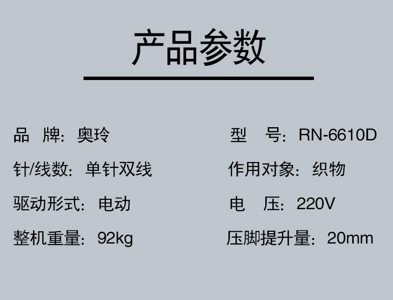 加工定制 : 是 线迹类型 : 绗缝机 线数 : 双线 适用厚度范围 : 厚料机 种类:缝纫机 作用对象:织物 驱动形式:电脑 产品别名:衣车 自动化程度:全自动 型号:RN-6610D 适用场所:工厂用 机头数:单头机 产品类型:全新 用途:缝纫设备 品牌:奥玲 针数:单针 线数:单线 重量:92kg
