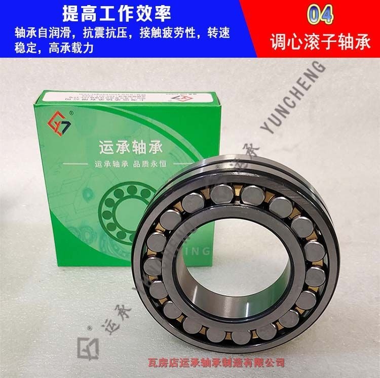 调心滚子轴承具有双列滚子,外圈有1条共用球面滚道,内圈有2条滚道 并相对轴承轴线倾斜成一个角度。这种巧妙的构造使它具有自动调心性能, 因而不易受轴与轴承箱座角度对误差或轴弯曲的影响,适用于安装误差或轴 挠曲而引起角度误差之场合。该轴承除能承受径向负荷外,还能承受双向作 用的轴向负荷。