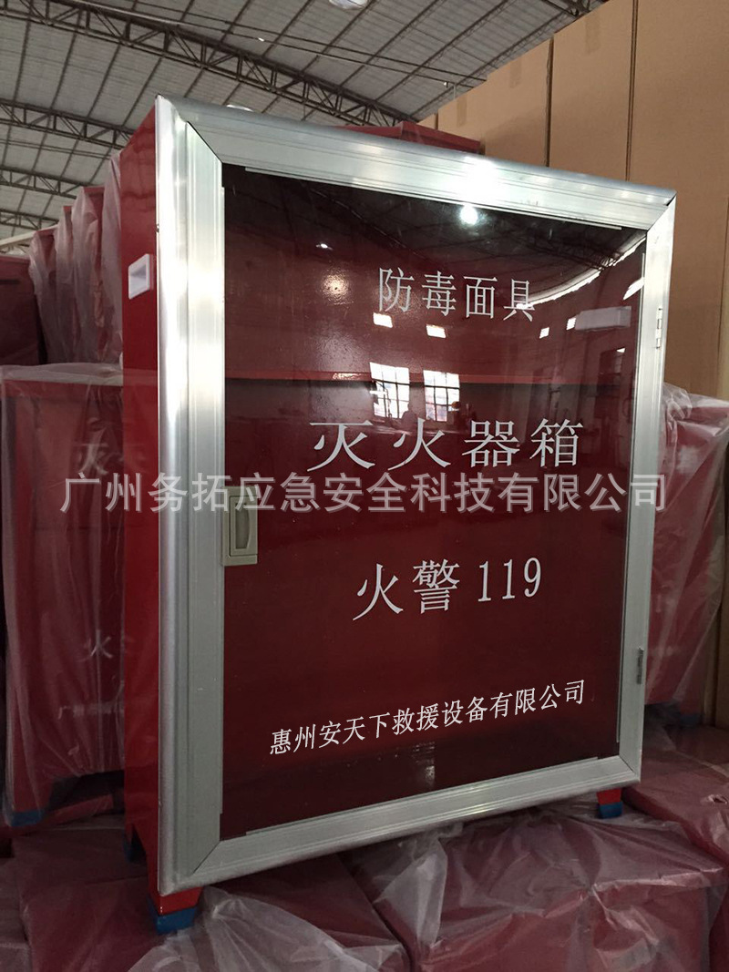 铁皮+吕门+有机玻璃,可放4个4kg干粉灭火器+4个防毒面具,另有其他型号可向本公司质询。