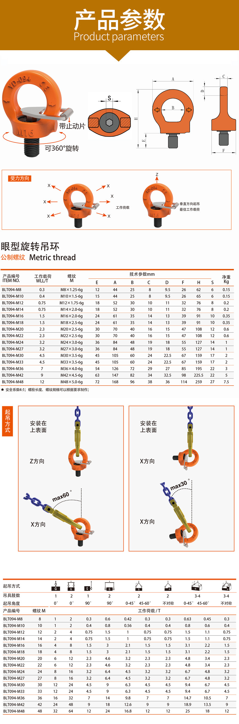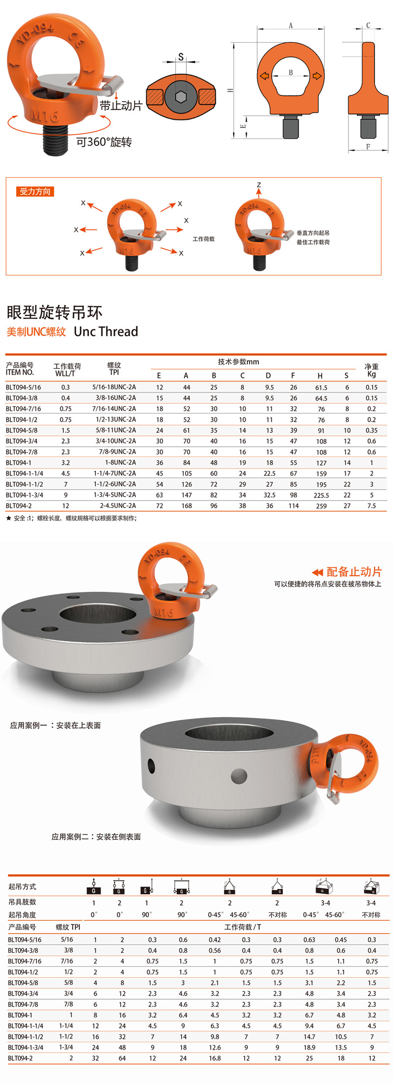 眼型旋转吊环 倍力特旋转吊环 眼型吊环带止动片吊点 参数 尺寸 拉力: