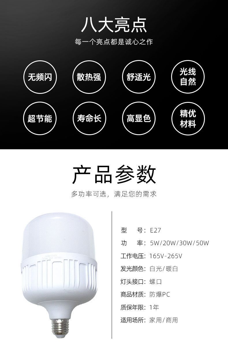 led节能灯 三防灯泡螺口E27 白光室内家用 无频闪省电超亮灯饰5瓦
