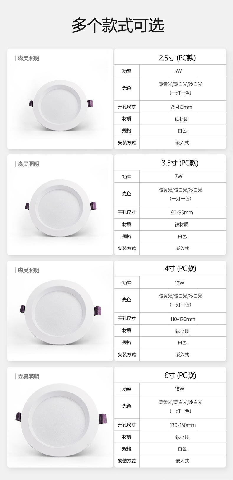 led三色筒灯6寸 酒店卧室嵌入式孔灯工程超市商铺灯 厂家直供
