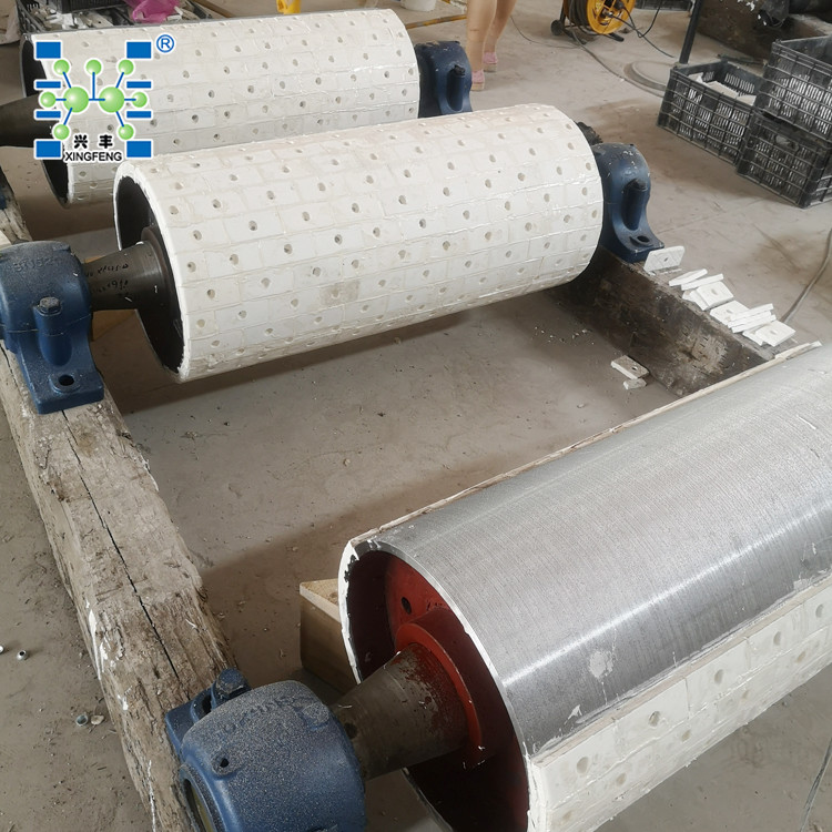 辊体采用钢结构件:表面经精车后,圆度和同心度控制在特殊公差范围内,弧形焊接式高强耐磨陶瓷与辊体表面采用韩国钢瓷结构胶连接,再通过我公司钢瓷焊接式技术,使陶瓷和辊体形成了一个具有很高强度的整体结构,解决了传统铸胶产品的不足,大大降低了企业生产成本.