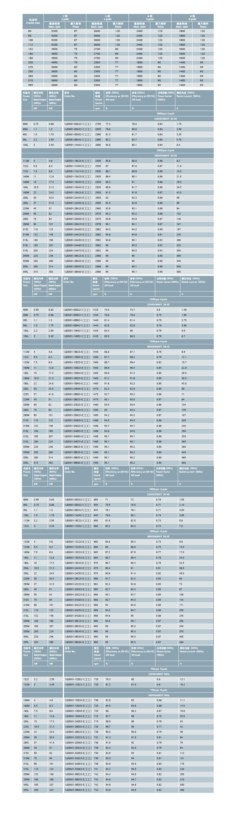 额定功率:0.55kW~315kW (50HZ)