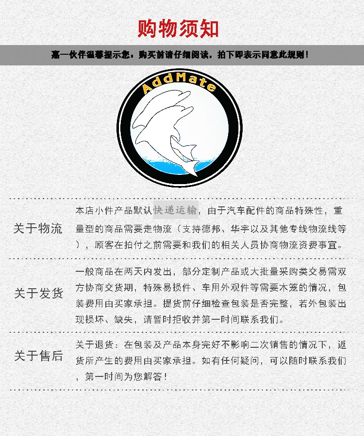 由于汽配产品的特殊性(重量型产品居多),如您需要采购大批量的产品不适合走快递运输的