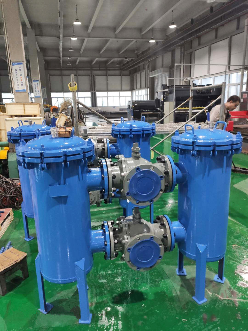 过滤器水压试验的压力为其设计压力的1.5倍,保压时间为30分钟,保证无渗透及变形现象。